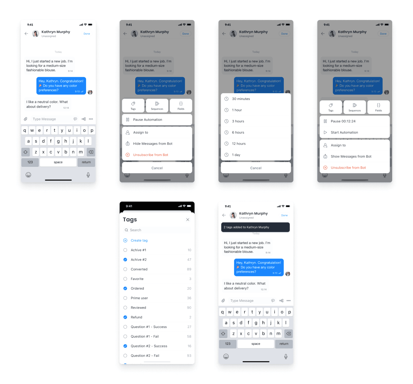 The users pause automation, add tags, and subscribe to sequences more often than other actions in the dialog with the customer;