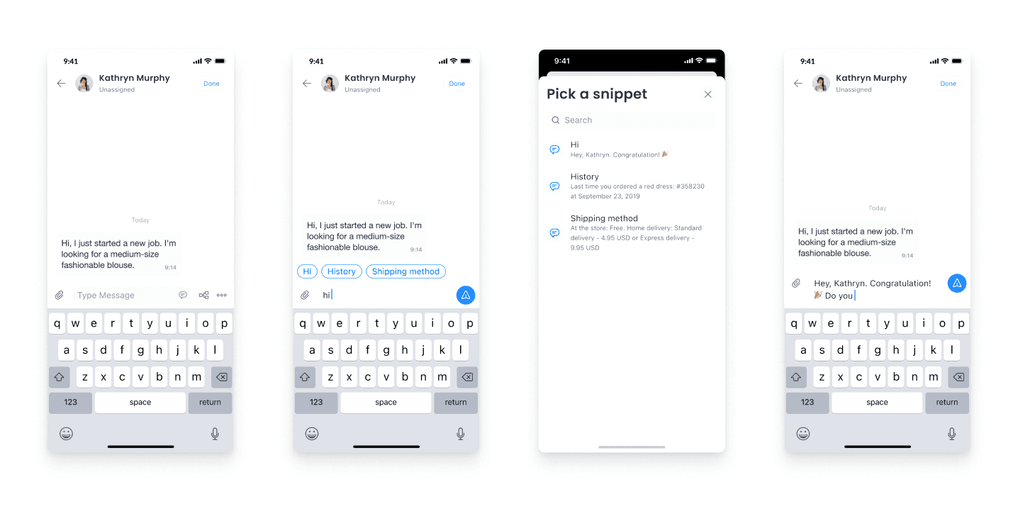 One of our key metrics became user response time. This led to the idea of introducing Snippets – quick replies.