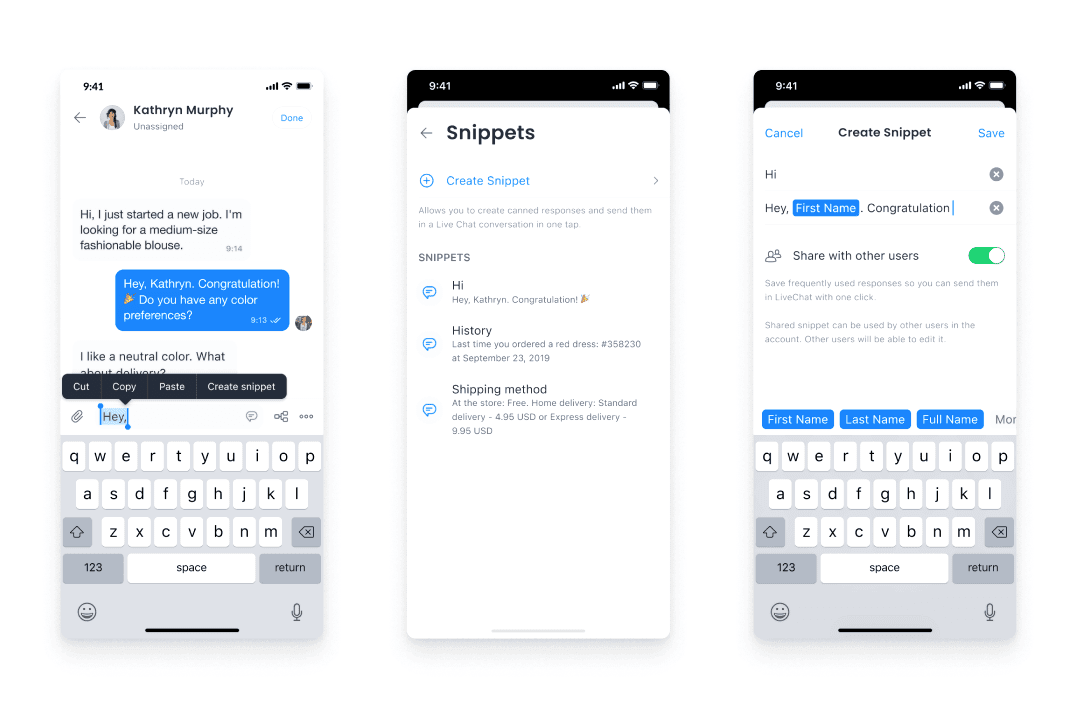 We also made sure that snippets could be easily created and shared among Live Chat agents within the same company.