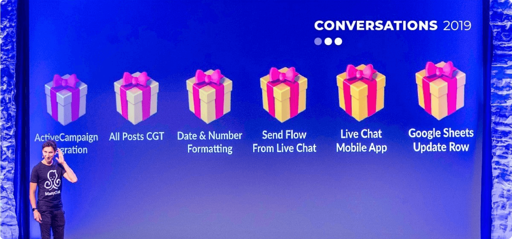 CEO ManyChat, Mike Yang gave a keynote with an update of the product and release the mobile app. For several days of the event, the app was installed by about a thousand users. And we have got a bunch of feedback, feature requests, and thanks from users personally.